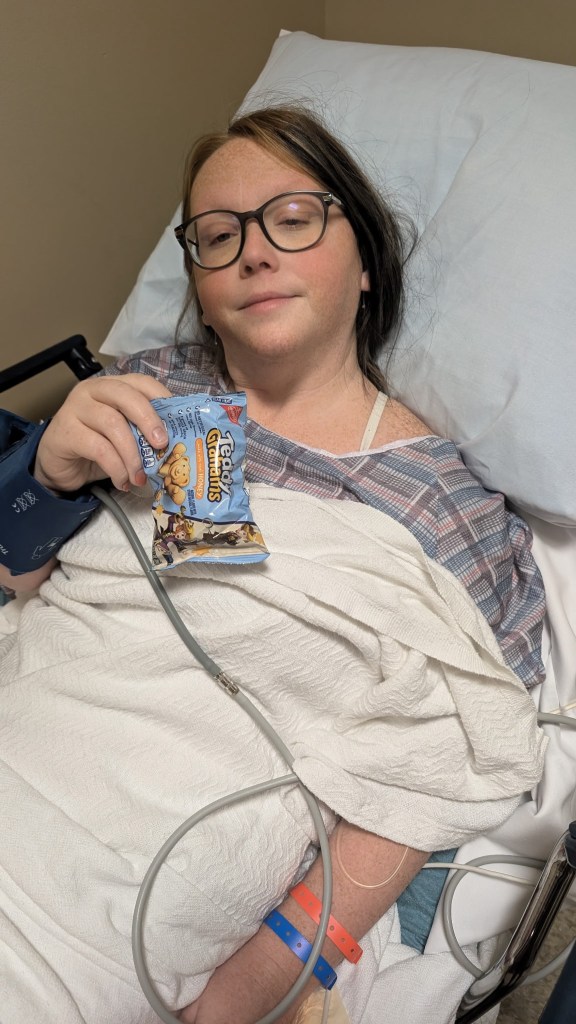 Below is a very embarrassing photo after egg retrieval (IVF round 1) that my husband took. I thought since we are all about transparency the good and bad, that I would include it in the post.